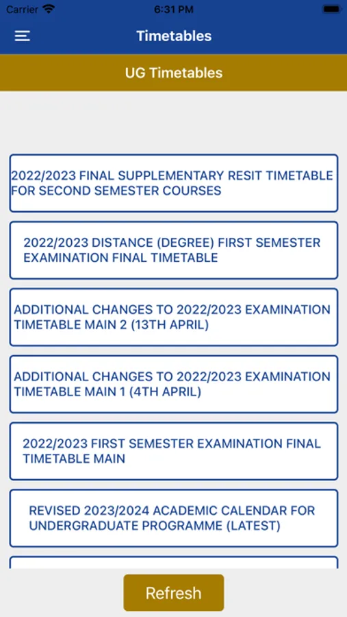 *Access Examination Time Tables, Academic Calendars, Student Hand Books