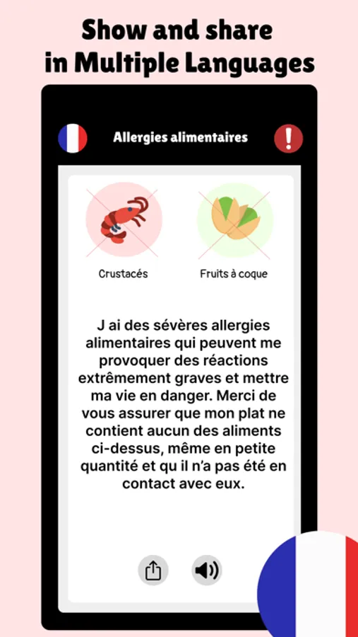 This innovative application has been specially designed to facilitate communication about your food allergies, even when you are traveling in a country where you do not speak the language.