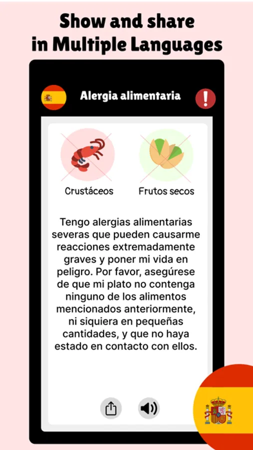 With this application, you will no longer have communication issues, as it automatically translates your selected allergies into the language of your choice. This way, you can easily inform restaurants, hotel staff, and anyone in contact with your food, about your specific needs.