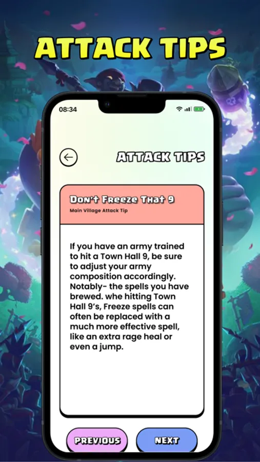 > Tips: The tips feature provides users with ultimate tips about game strategy to grow their Town Hall and improve their attack methodology.