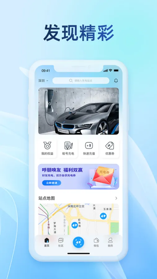 1. 智能推荐附近最近的充电站点,支持地图找站,支持一键导航;