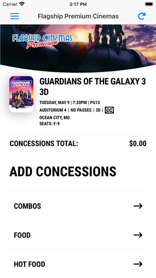 ii) In-App Concessions - No more waiting in line for popcorn and soda! Order your favorite snacks and beverages directly from the app and simply pick them up when you arrive at the theater. With our easy-to-use interface, you can customize your order and even access special offers on concessions.