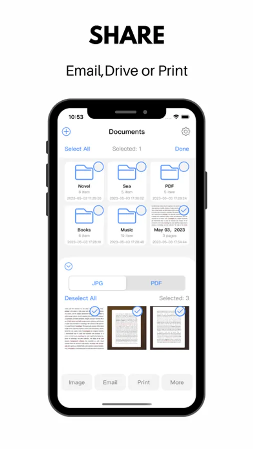 - Easily share documents in PDF or JPEG format with others via social media, email attachment or sending the doc link,Save and view the scanned files anytime, anywhere