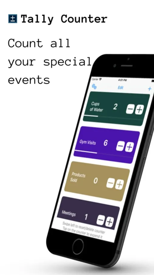 + Increasing and decreasing a count with large, easy to hit buttons.