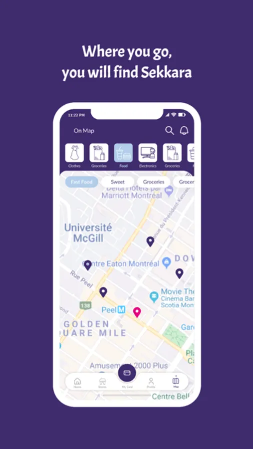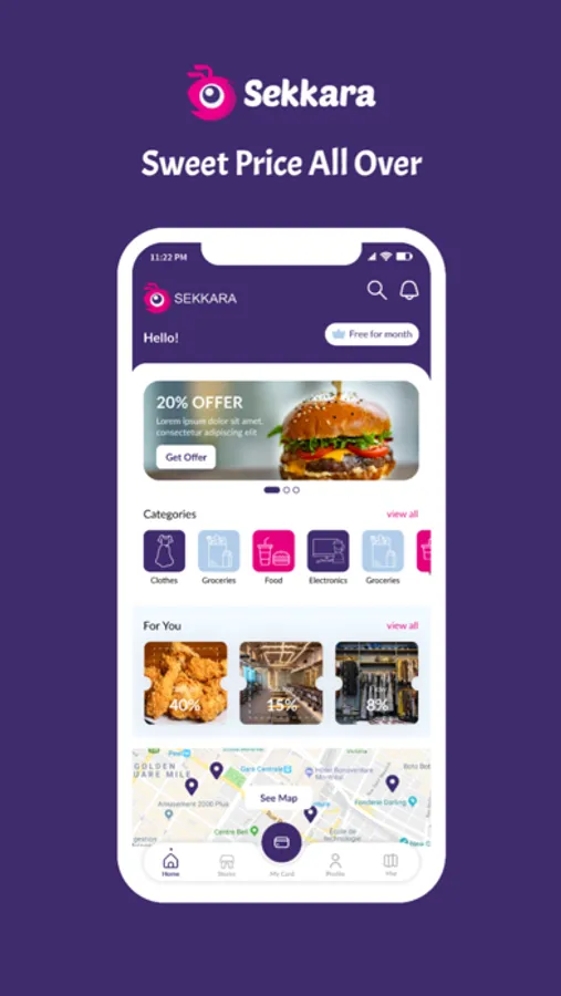 • Map: To be characterized by a quick and easy service, we will provide you with a map service that will help you find the locations of the shops you are interested in visiting and will give you the opportunity to try new places near or far from you and take advantage of the offers and discounts offered to you as soon as you subscribe to the Sekkara application.