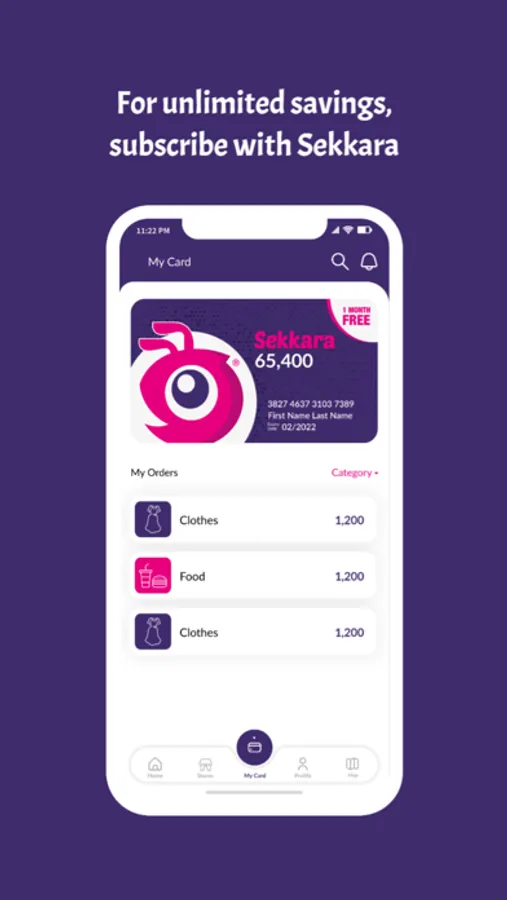 • My Card: Once you subscribe to an annual, semi-annual or monthly category, you will be given the opportunity to use your QR code to get discounts and offers for the Sekkara application It will also enable you to know how much you spend and save from in-app offers.