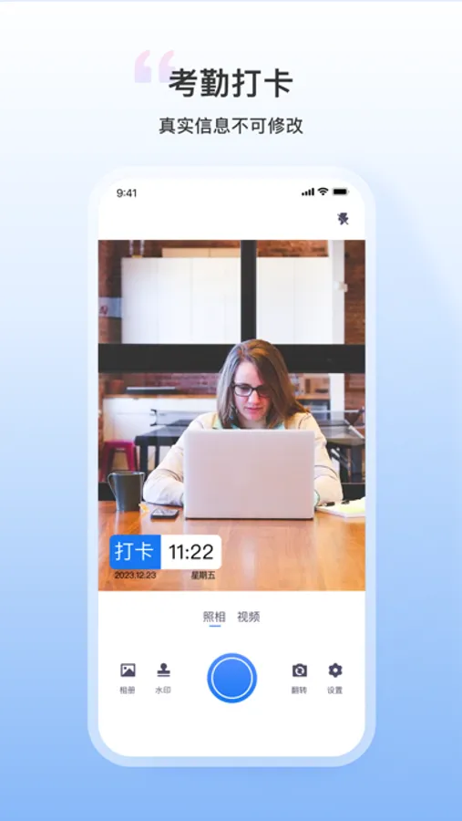 每日打卡水印相机是一款高清工作拍照水印App,可在照片或视频上添加时间、地点等水印信息,信息真实不可篡改,有效的提高了工作效率