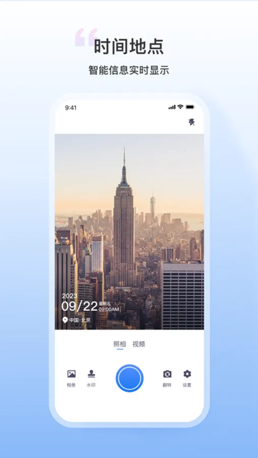 支持拍摄和从相册选择照片、视频来添加多种水印,水印信息真实有效