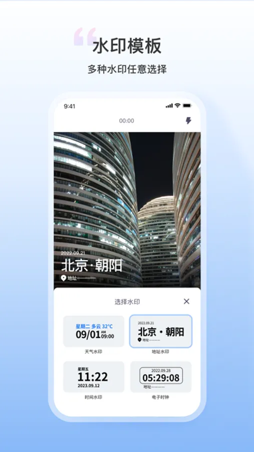 时间地点水印、考勤打卡水印、天气水印、电子钟水印等多套模板,真实还原多种工作和生活场景