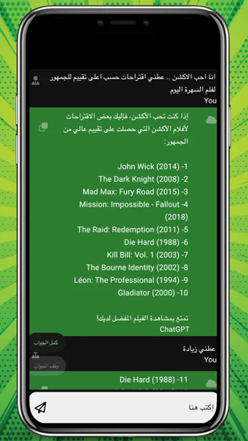 10. الإجابة على الأسئلة العامة والمنوعة: يمكن للتطبيق الإجابة على الأسئلة حول مواضيع متنوعة مثل الأفلام والموسيقى والتكنولوجيا والثقافة العامة. مثال: "من هو مخرج فيلم إنسبشن؟"