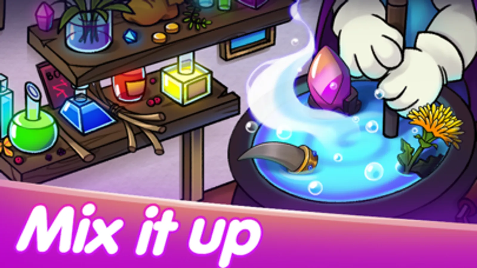 It’s a beautiful and well-organized offline game with a small world of its own. Where you need to handle your, let’s call it, the business of potion brewing. So, what do we need to make a potion, any potion? A cauldron, that you already have; recipes, of course, you can experiment with, it’s all up to you but it’s always easier to follow the recipe, especially when time is money; ingredients like different herbs, magical things, precious stones, and flasks. Some ingredients and flasks you will have from the start, some of them you will find in your magic adventures, and some of them you can simply buy from the merchant. Adventures will take some time, but you will quickly understand that they are worth it. They will give not only ingredients for your witchcraft but recipes for your potions too. If you don’t have enough money to buy ingredients, you can always exchange one for another. Yes, as already been told recipes are important to make your alchemy experiments successful, but nobody forbids you to try something out from the top of your head. As they say: “Becoming a great wizard by accident still makes you a great wizard”. So you have these potions brewed and they are all over your cupboard, they are even in your drawer, oooh, I wouldn’t drink from this teapot. What to do with them? They are like a good broom. Why do you need it if you don’t fly on it? So make those magic potions work for you, make a business out of them, and maybe one day you will wake up as a tycoon. Oh, and flasks are essential too! Different shapes make different volumes of alchemy, and this creates various prizes.