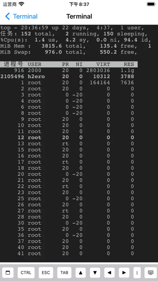 Supports viewing the full process list, including PID, User, CPU Usage, Memory Usage, Command, and Status.