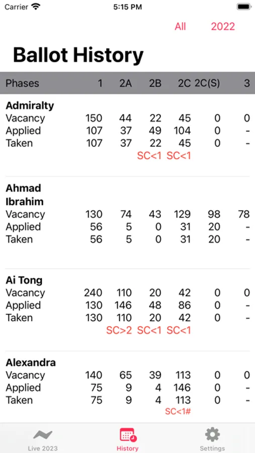 Now, we are bringing the same balloting history & timely updates to the app! When P1 registration begins, there will be an additional LIVE tab with the latest result.