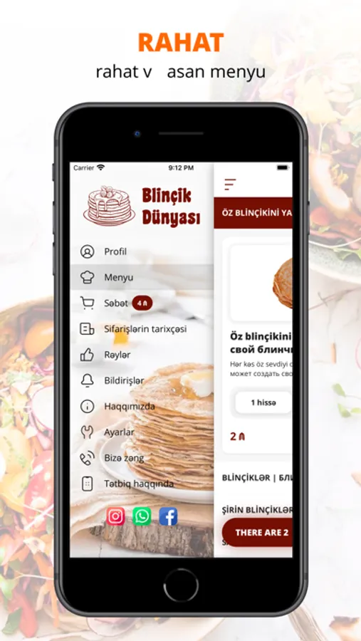 Blinçik və digər Blinçik əsaslı təamları birbaşa evinizə və ya ofisinizə çatdırmaq üçün sizlərə mükəmməl mobil tədbiq təqdim edirik.