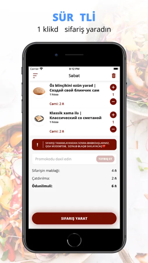 Bir neçə kliklə dadlı yeməkləri seçin və çatdırılma ilə sifariş edin!