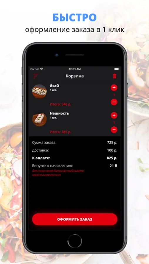 Скачивайте наше приложение, оформляйте заказ и наслаждайтесь любимой едой, где бы Вы ни были! Приятного аппетита!