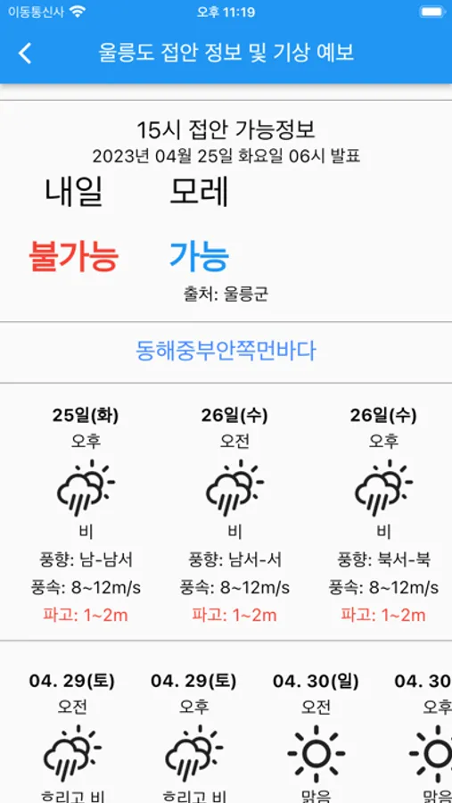 독도 여행 최적화 앱: 파고 및 배편 빈자리 정보 제공