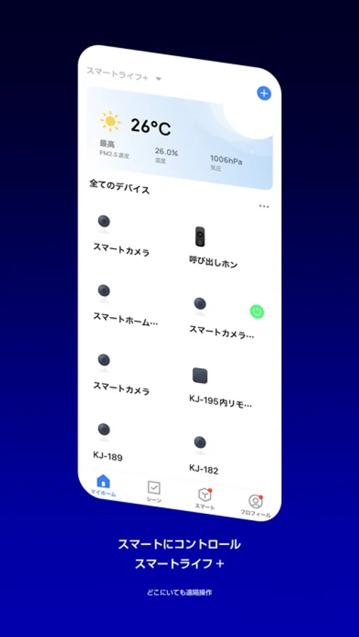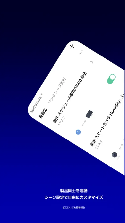アプリを使えば手軽にスマート家電が操作できます。家の中でも外出先からでも遠隔操作できます。個人アカウントに加え、家族アカウントを登録することでスマート製品を共有化することができます。