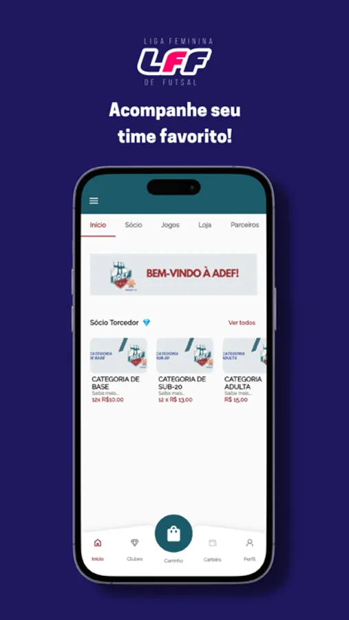 No APP da Liga Feminina de Futsal, você acompanha as notícias dos times, garante produtos oficiais e ingressos para os jogos, além de ter acesso a rede de benefícios e promoções exclusivas.