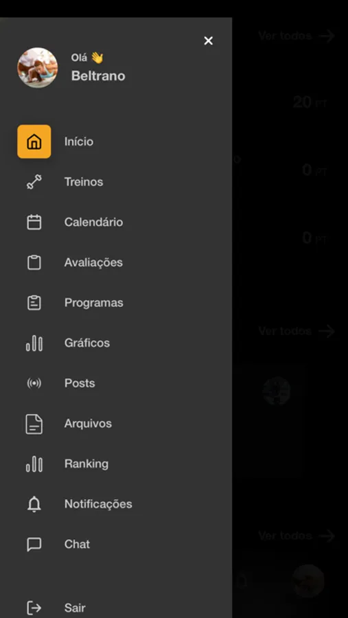 - Tem acesso aos seus treinos;