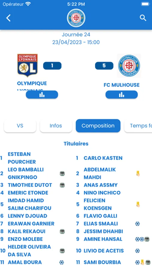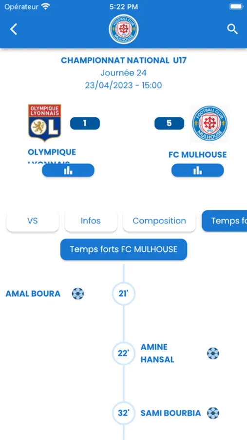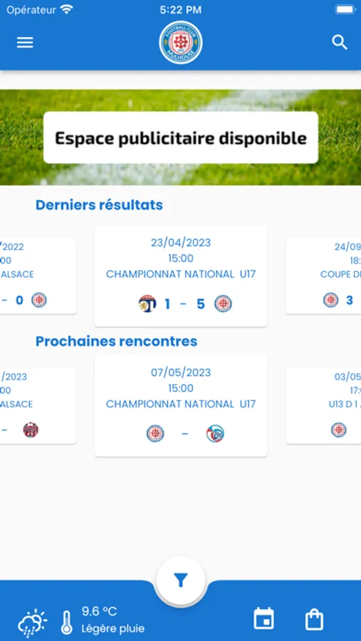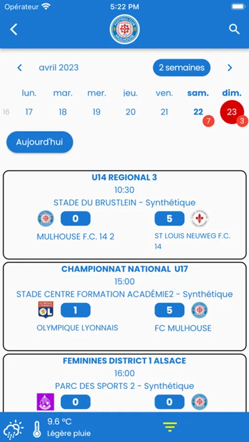 Avec l'App du FC Mulhouse, tu accèdes aux résultats, calendriers et classement de l'ensemble des équipes du club.