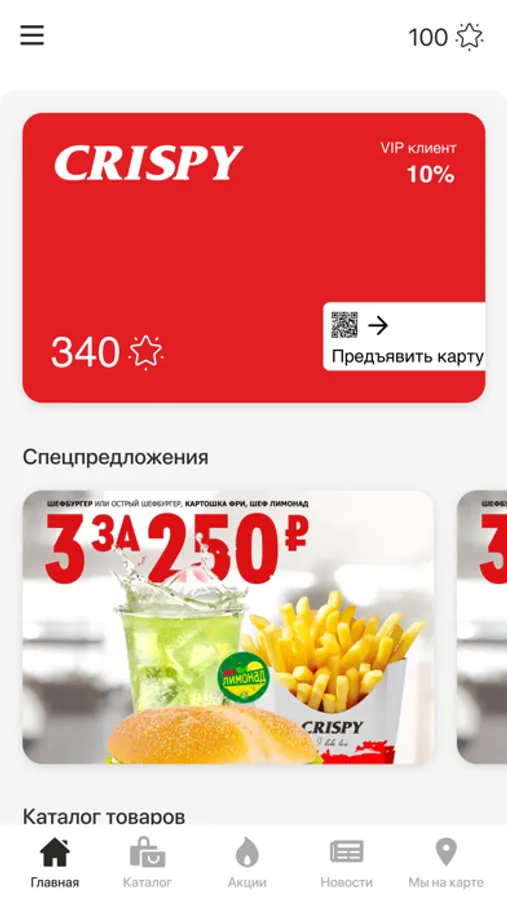 Предъявляйте бонусную карту при каждом заказе в Crispy и получайте баллами до 10% от суммы заказа.