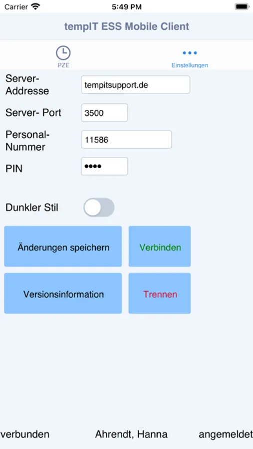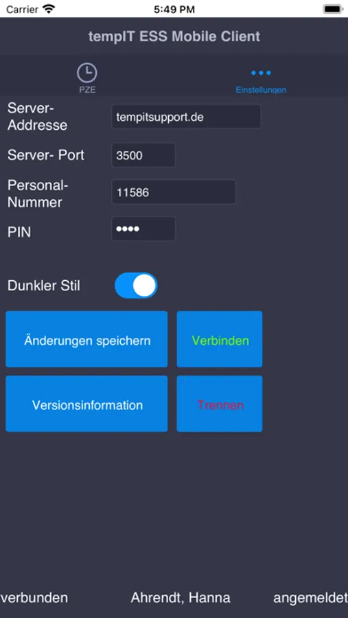 Er ermöglicht den Mitarbeiterinnen und Mitarbeitern der Unternehmen, die tempIT Zeiterfassungslösungen einsetzen, die persönliche Echtzeiterfassung und Saldenabfrage direkt von Ihrem Apple-Mobilgerät.