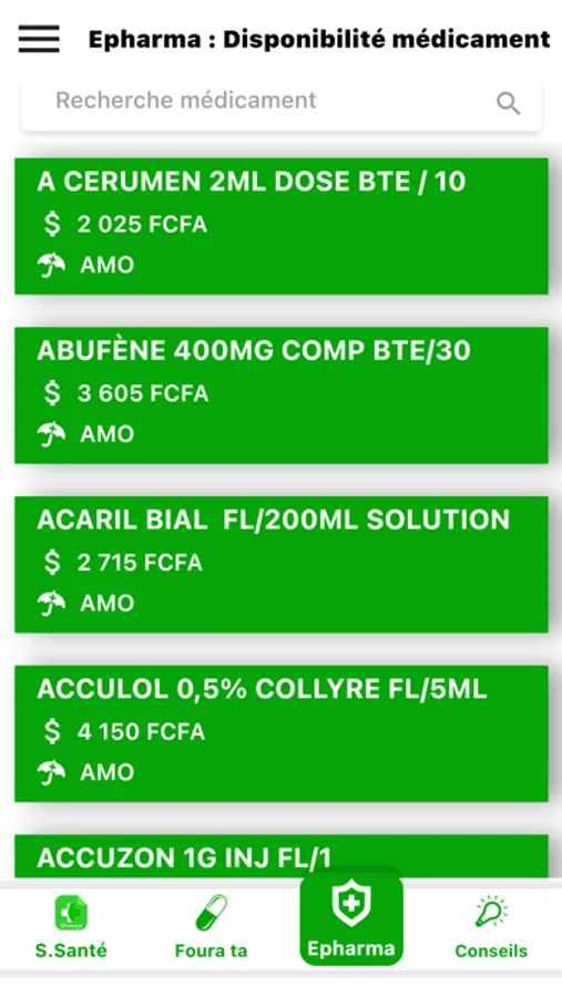 - Prix de certains médicaments et les disponibilités dans les pharmacies.