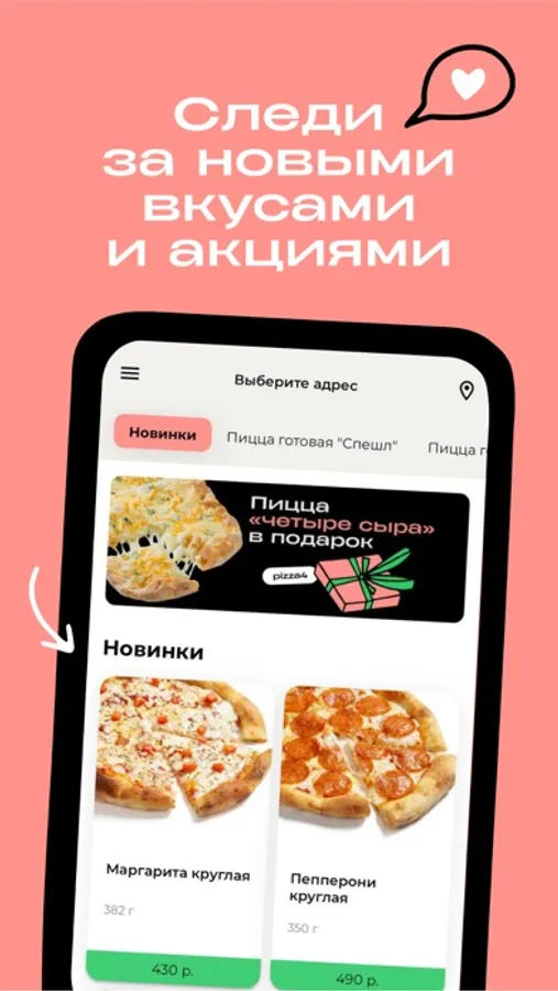 Любимые вкусы пиццы и возможность создать свой уникальный рецепт из более, чем 30 начинок — в приложении.