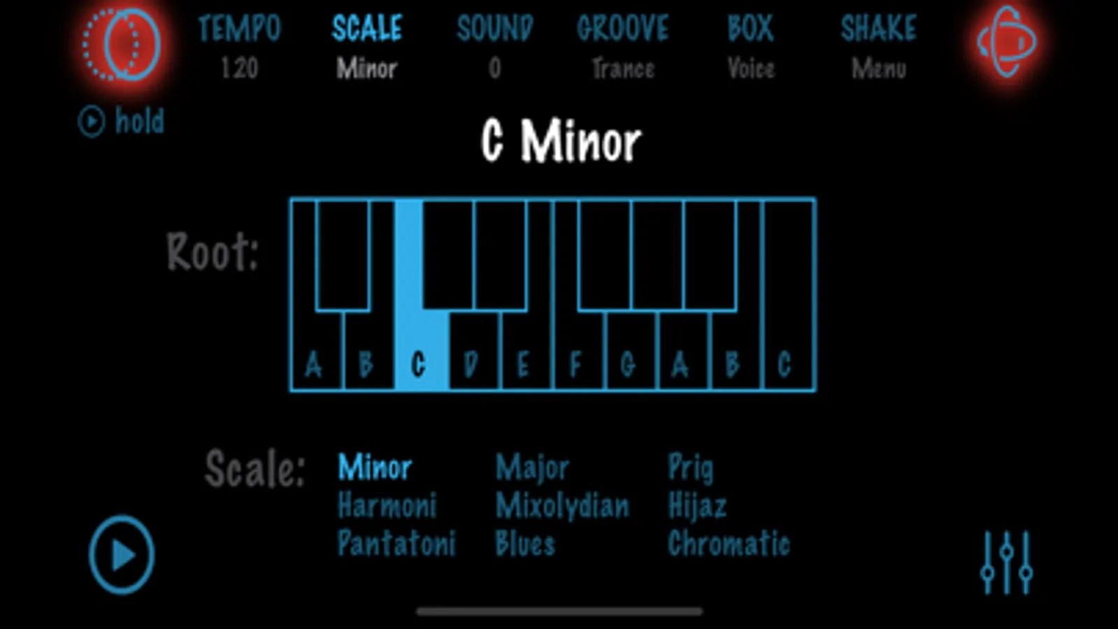 Press the Gyro button and raise your device up in the air. Shake when you feel like changing the sound or rhythm.