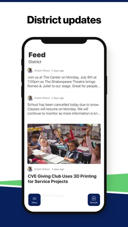 In the Live Feed is where you'll find updates from the administration about what's going on in the district right now. Whether that's celebrating a student's success, or reminding you about an upcoming deadline.