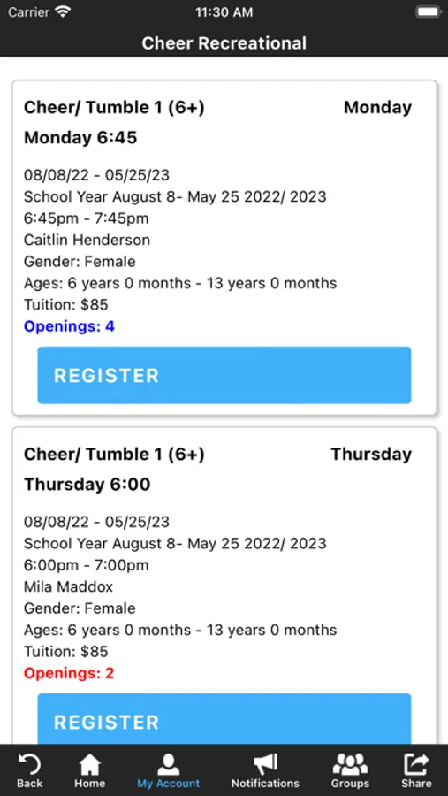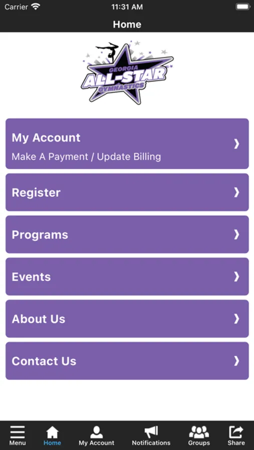 The GASG mobile app allows you to manage your account with ease, register for classes, special events, and parties! You'll also receive important notifications about class updates, registrations, special announcements, closings, and upcoming events.