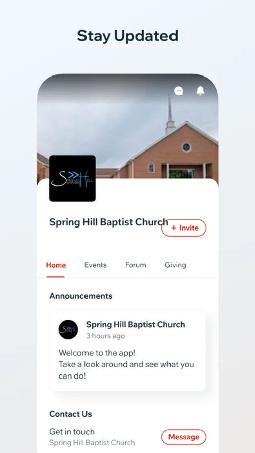 Introducing our brand new church app - the ultimate tool to enhance your worship experience! With this app, you can easily access church updates, listen to sermons, take part in online events, and connect with your fellow members, all from the palm of your hand. Whether you're on the go or at home, our app provides a seamless and convenient way to stay connected to your faith community. Download now and discover how our app can bring you closer to God and the church community.