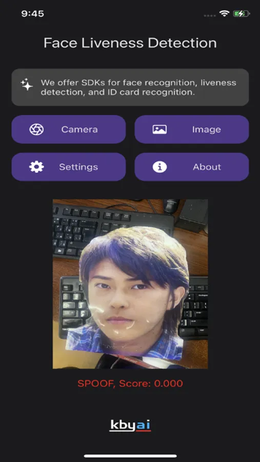 Our app utilizes an innovative 3D passive liveness detection technique to accurately detect spoofed faces.