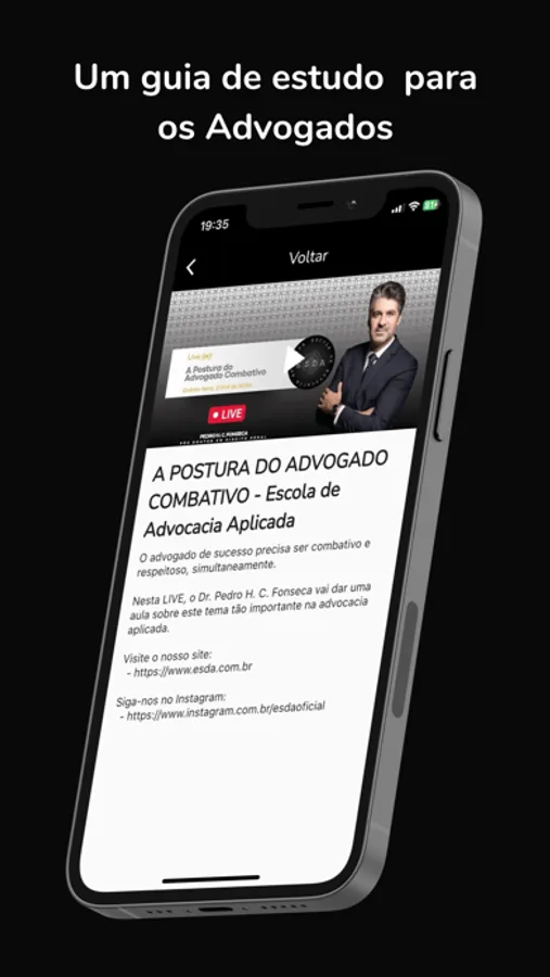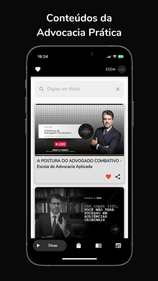 O APP da ESDA - Escola de Advocacia Aplicada - é voltado àqueles advogados que queiram ter em mãos dicas valiosas a respeito do exercício da Advocacia.