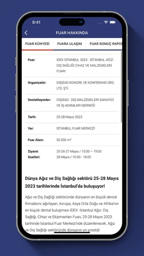 IDEX 2023 is to be visited by faculties, oral & dental healthcare centers, clinics, laboratories, dentists, dental technicians, dentistry students and dental trading companies, and is organised with the support of Republic of Türkiye Ministry of Trade - Small And Medium Industry Development Organization.