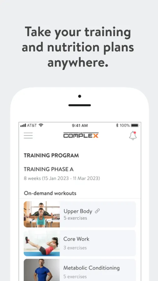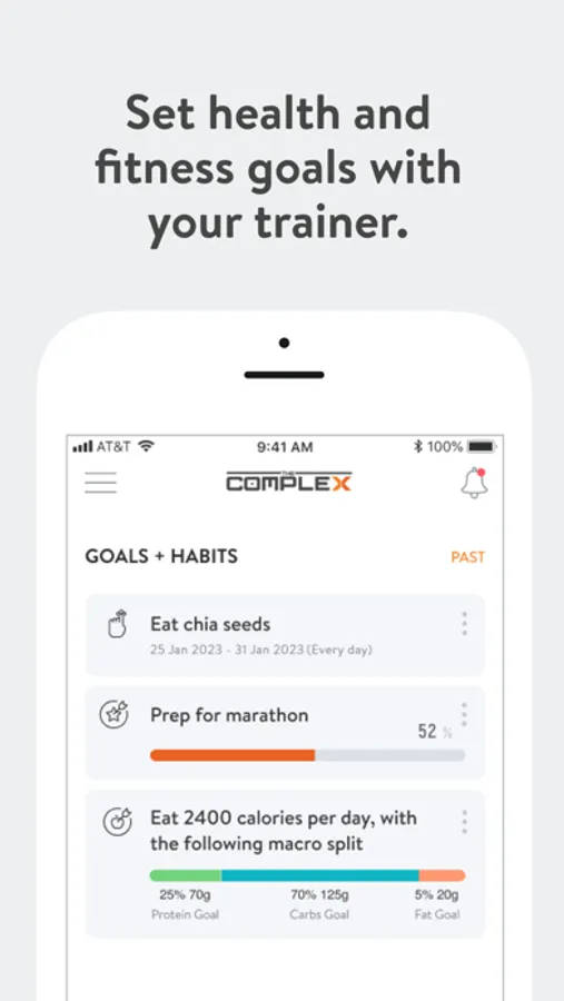 With the COMPLEX YUMA App, you can start tracking your workouts and meals, measuring results, and achieving your fitness goals, all with the help of your personal trainer.