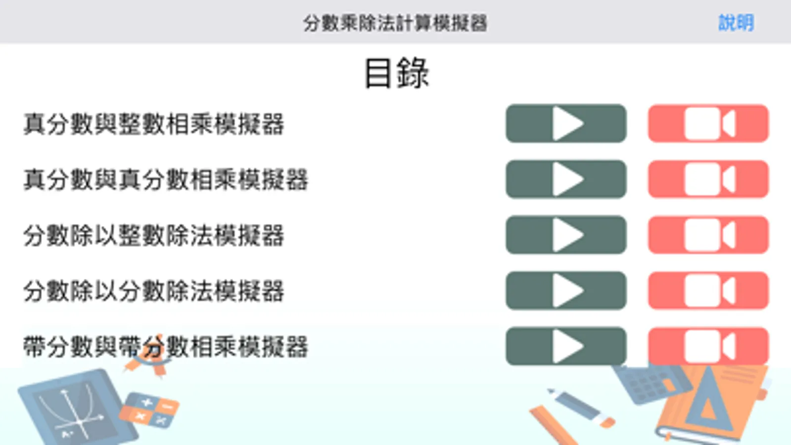 來達到讓小學生能在家中自行複習各類型分數乘除的效果。