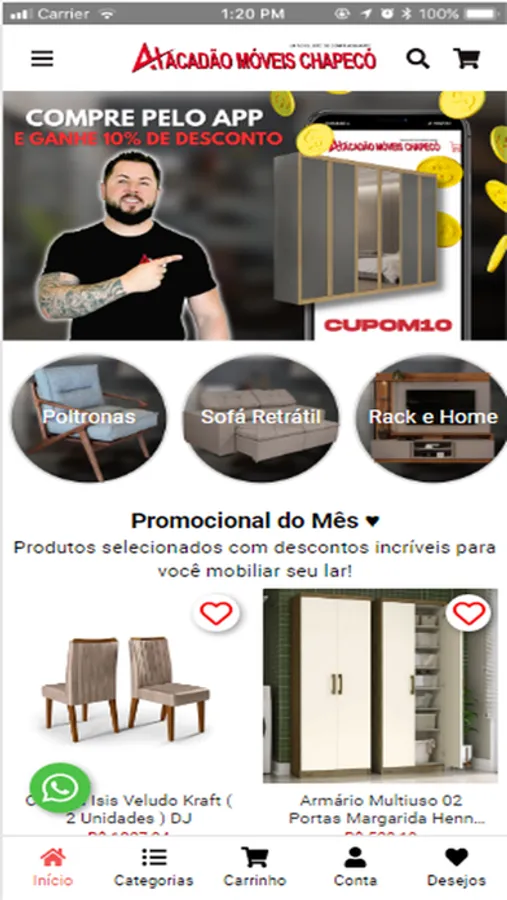 A empresa Atacadão Móveis Chapecó surgiu da ideia de trazer preços acessíveis com produtos de qualidade, iniciou seus trabalhos em 18 de dezembro de 2017 com o slogan um novo jeito de comprar barato, e trouxe pra Chapecó um estilo de venda muito próximo ao da internet, com o diferencial do cliente degustar o produto e ser atendido pessoalmente por um vendedor pois em nossas lojas físicas o cliente tem a oportunidade de ver nossos produtos montados.