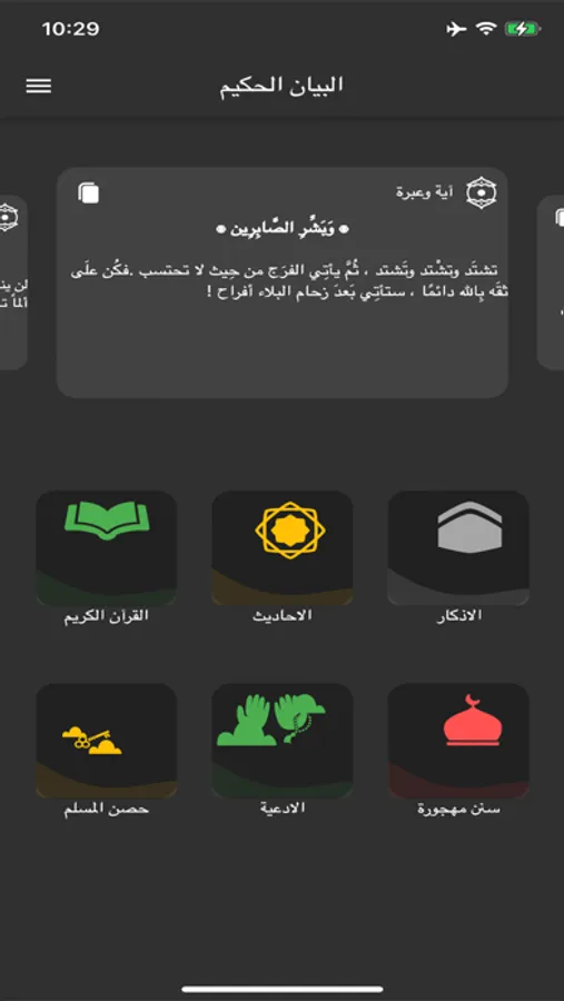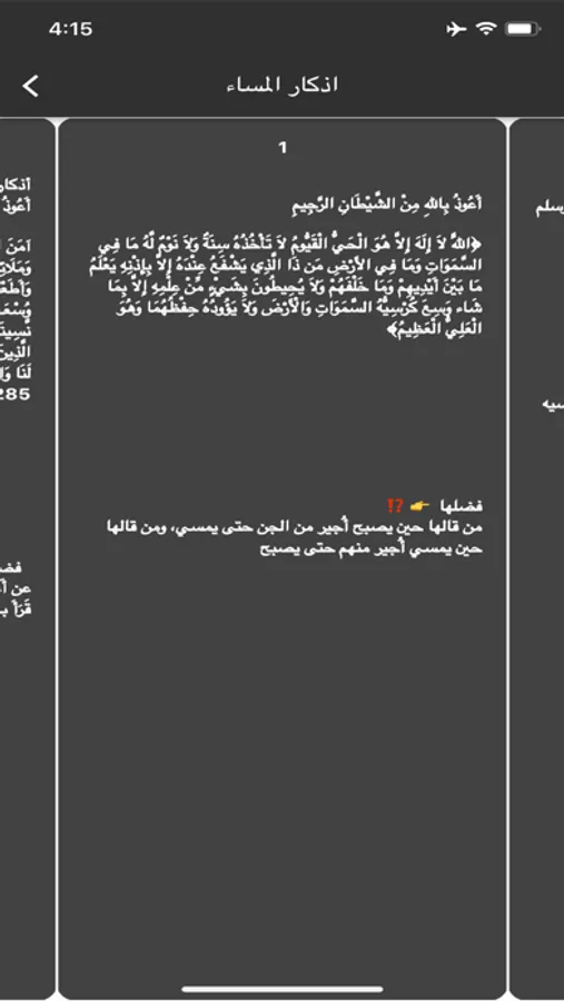 القران الكريم كاملاً دون اتصال بالانترنت وهو مطابق تماماً للمصحف الورقي بالإضافة لميزة البحث ولدعاء الختم وإمكانية وضع علامة وفهرس السور. اذكار: اذكار الصباح , اذكار المساء, الصلاة على النبي, اذكار الاستيقاظ, اذكار النوم, تسبيح ما بعد الصلاة, الاحاديث النبوية, سنن مهجورة, الادعية, حصن المسلم