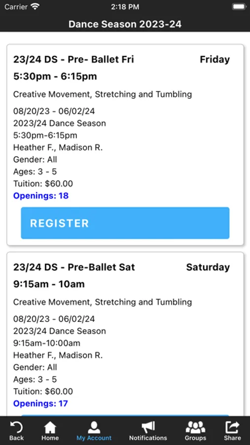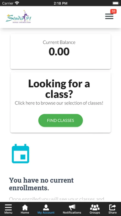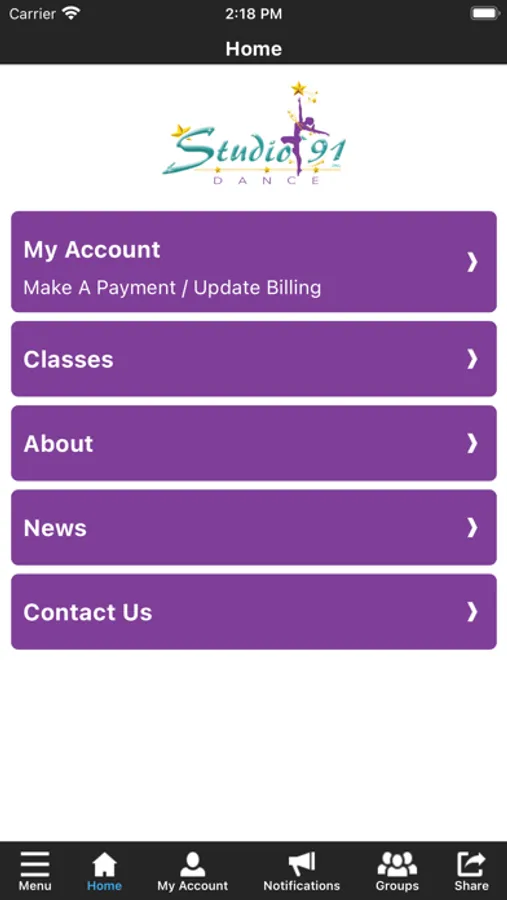 The Studio `91 app allows you to manage your account with ease, register for classes, and special events. You'll also receive important notifications about class changes, closings, registration openings, special announcements, and upcoming events.