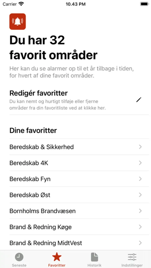 Modtag en push-besked på så snart der er en ny alarm. Du kan vælge at modtage en push-besked for alle nye alarmer eller kun for specifikke områder