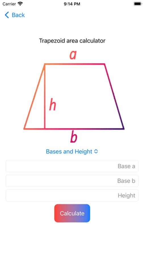• Trapezoid area calculator: Find the area of a trapezoid using its base lengths and height.