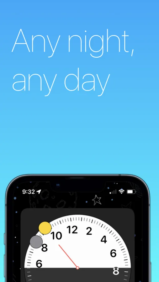 Our simple widget shows you sunrise on the left and sunset on the right, mapped onto a 24-hour clock. This way, you can always see where the sun or moon is compared to where you are. It's perfect for anyone from photographers looking for the perfect light, curious people wanting to learn more about the sky, or folks who just like to look at the moon.