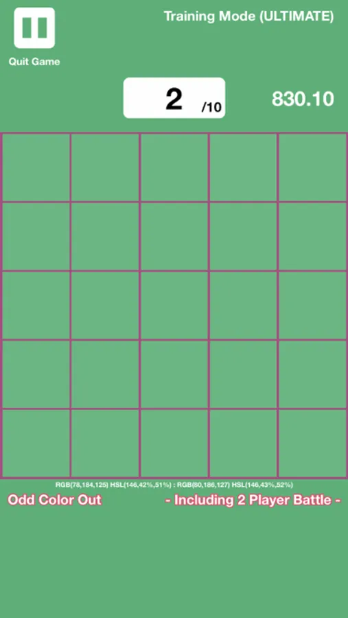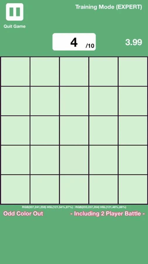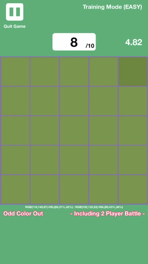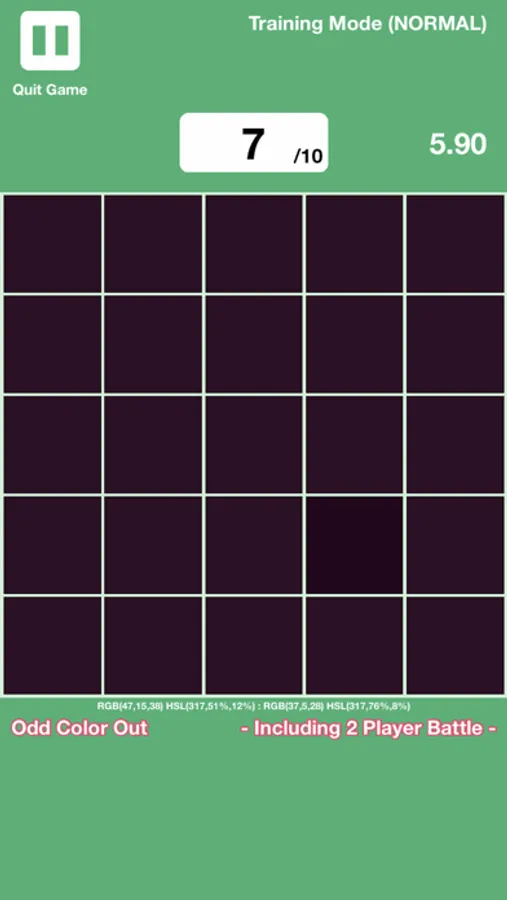 This game blends elements of both "color vision tests" or "color blind tests" as well as "odd one out" games.