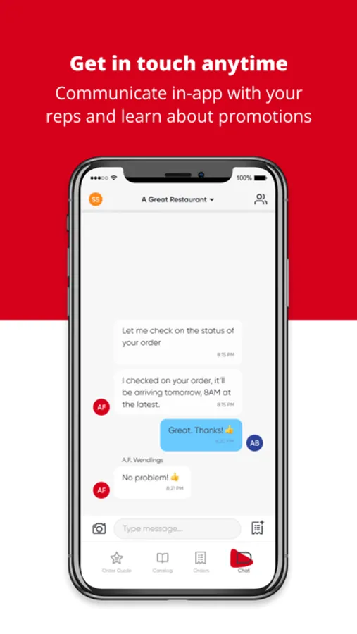 - Get in touch anytime: communicate directly with your A.F. Wendling's Foodservice rep in the app
