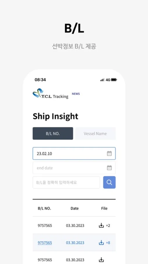 TCL 고객사의 업무 편의를 위해 선박의 입출항 정보, 항적, 도착 예정 시간을 실시간으로 제공함으로써 고객사의 경쟁력 제고에 도움을 드리며 또한 B/L관련 서류를 실시간으로 공유함으로써 업무 편의를 획기적으로 개선할 수 있는 플랫폼으로써의 기능을 제공하기 위해 개발되었습니다.