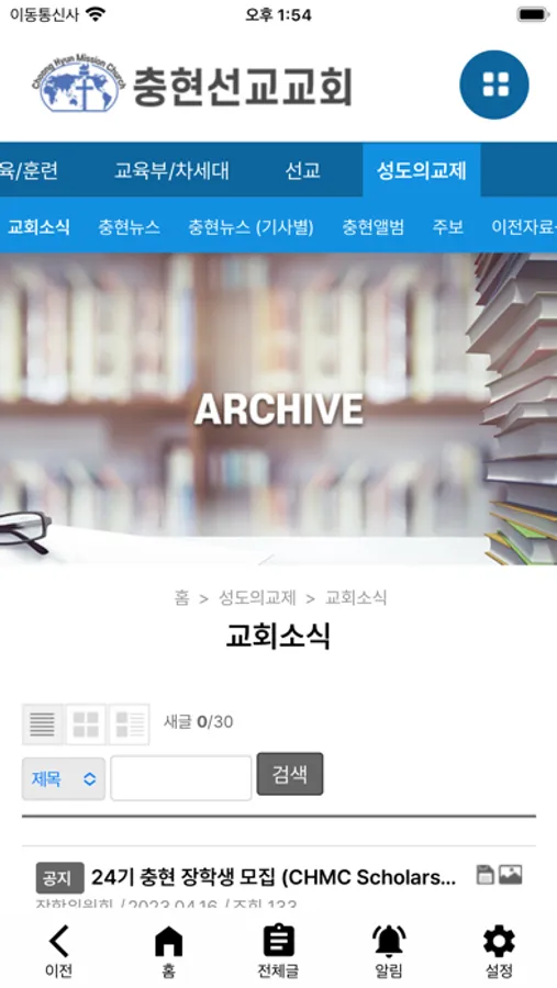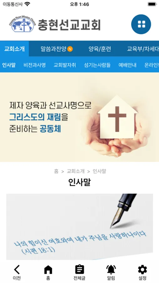 교회사랑넷 앱 고객지원실 : 1661-9106