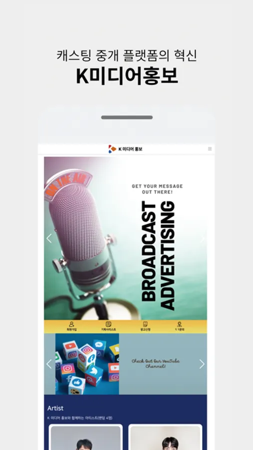- 어플 내에 이미지 배너광고와 동영상 광고를 통해 자신의 기획사를 홍보해 보세요.