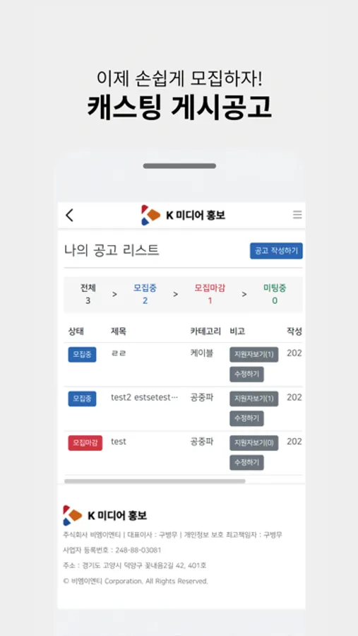 - 신규 캐스팅을 위한 공고게시 및 프로필 정보 업데이트를 통한 PR홍보